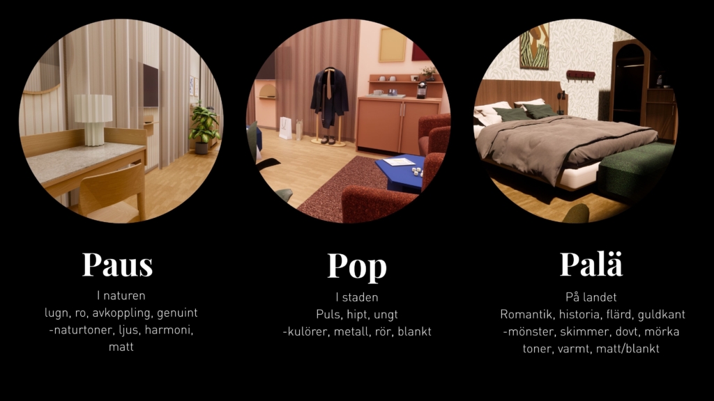 Vi har tillverkat inredning till hotellrum för den nordiska marknaden i över 40 år och samlar nu all vår erfarenhet i färdiga grundkoncept, tre kollektioner av hotellinredning. För att göra det ännu enklare kommer kulör & material-koncept finnas färdiga att välja från. Självklart finns även möjligheten att anpassa kulör & material efter ert hotell om behov finns. Vi jobbar i kollektionerna PAUS, POP och PALÄ.