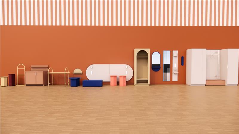 Vi håller just nu på att rita färdigt kollektionerna och i varje kollektion finns olika typer av inredning som ska täcka in ett hotellrums alla behov, krav och funktioner. Här är ett exempel på inredning i kollektionen POP. Här jobbar vi fram sänggavlar, skrivbord, sängbord, minibarsskåp, hyllor, väggpaneler, garderober, krokar och hängare, m.m.